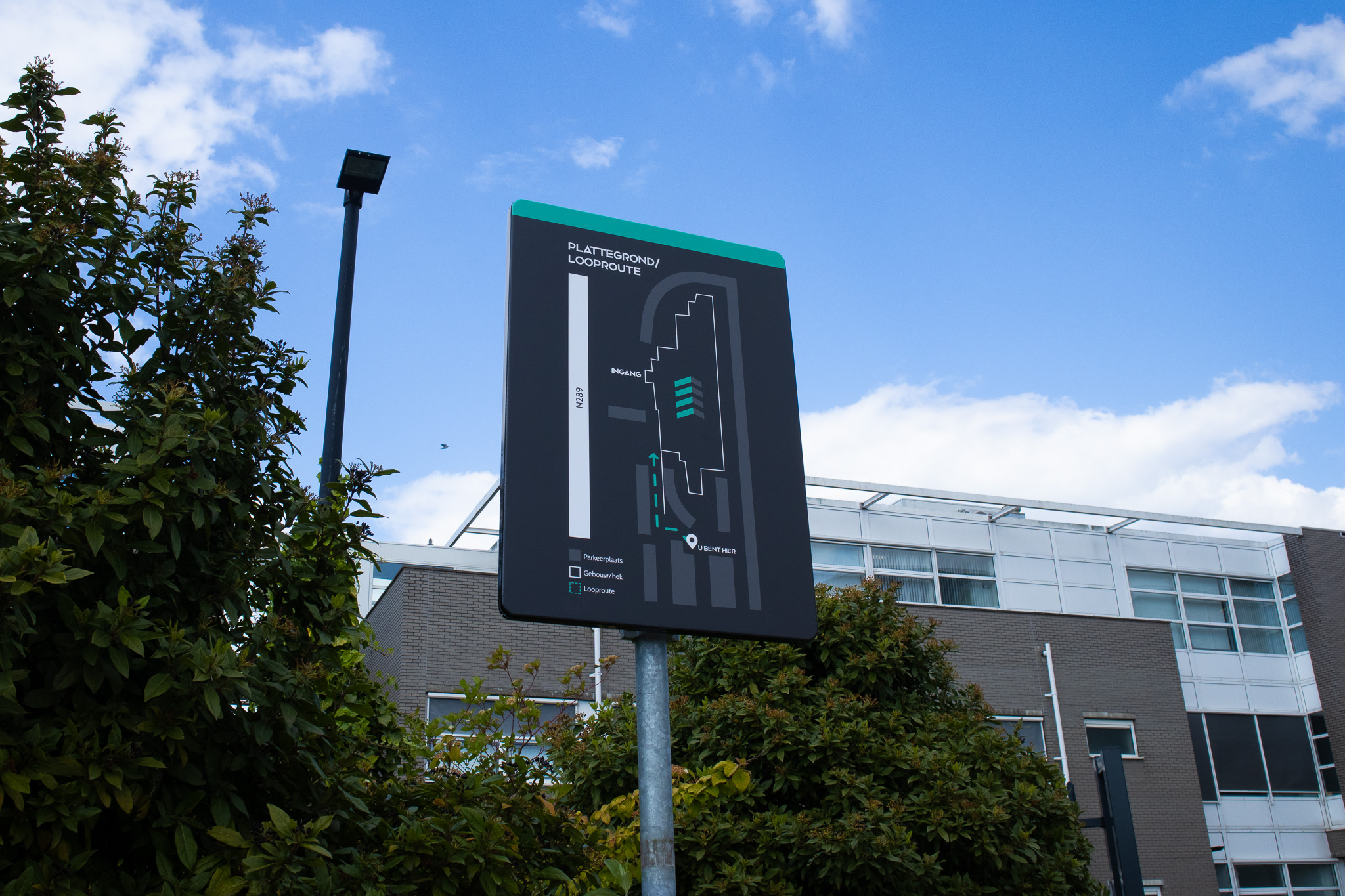 En tja, als er zoveel verschillende bedrijven onder één dak zitten, kun je natuurlijk niet zonder sterke signing. Want hoe vinden al die bezoekers anders de weg? Juist, met herkenbare bewegwijzering en een logische routemarkering. Wij mochten zowel binnen als buiten aan de slag!